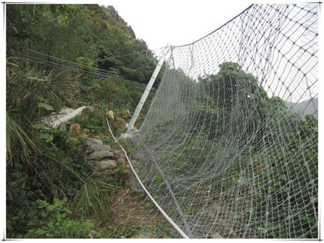 2、斜坡防护网钢丝绳直径应采用标准∮8材料生产,执行质量要求的产品可以保证斜坡防护网的灵活性,抗拉力,获得合格满意度,通常是轻微的错误可能会对山的被动防护网稳定保护质量造成致命的损害。