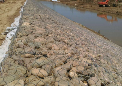 镀锌石笼网应用在河道防洪治理工程中,是一种新式牢靠的绿色生态柔性防护网。完成了传统堤防向生态堤防的转型,保留了河流原有的结构和作为生态廊道的功能。镀锌石笼网抗冲刷力强、透水性强,又是生物易于栖息的多孔隙构造,实践证明该工艺具有施工速度快、就地取材、施工成本低的特色符合天然生态型河流建造要求。