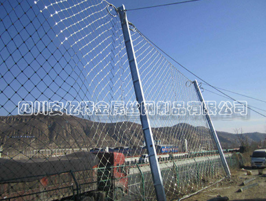 被动防护网材质:钢丝绳网、支撑绳和减压环结构:由钢丝绳网或环形网(需阻拦小块落石时附加一层铁丝格栅)、固定体系(锚杆、拦锚绳、基座和支撑绳)、减压环和钢柱四个首要部分构成。